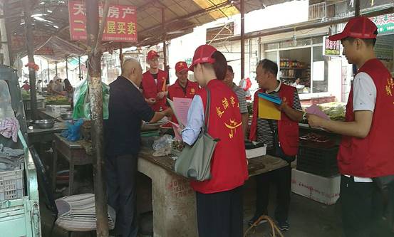 環(huán)保志愿者走進(jìn)農(nóng)貿(mào)菜場(chǎng)進(jìn)行宣傳